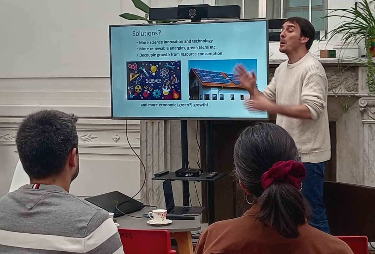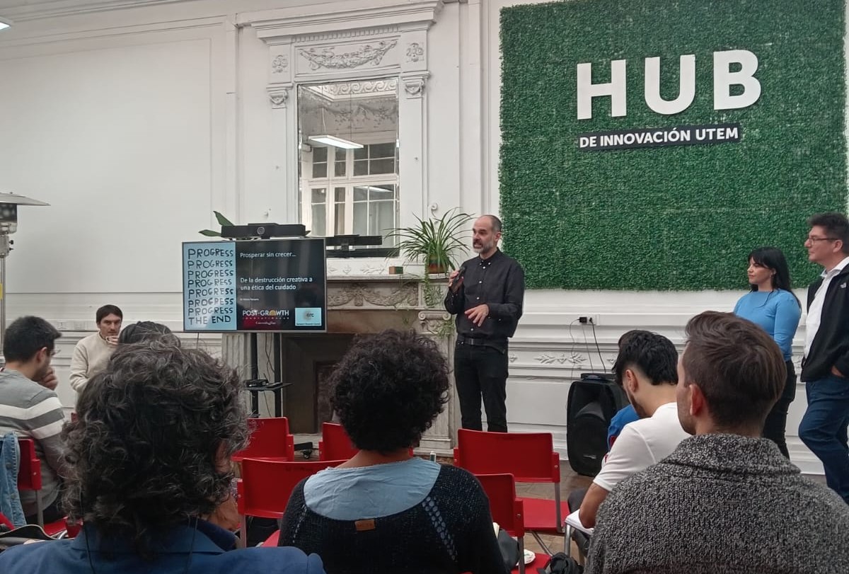 La apertura estuvo a cargo del académico e investigador Mario Pansera, director del Post-Growth Innovation Lab y profesor de la Universidad de Vigo, quien ofreció la conferencia “De la destrucción creativa a una ética del cuidado”, reflexionando sobre el papel de las tecnologías y la innovación en un mundo marcado por crisis ecosociales.